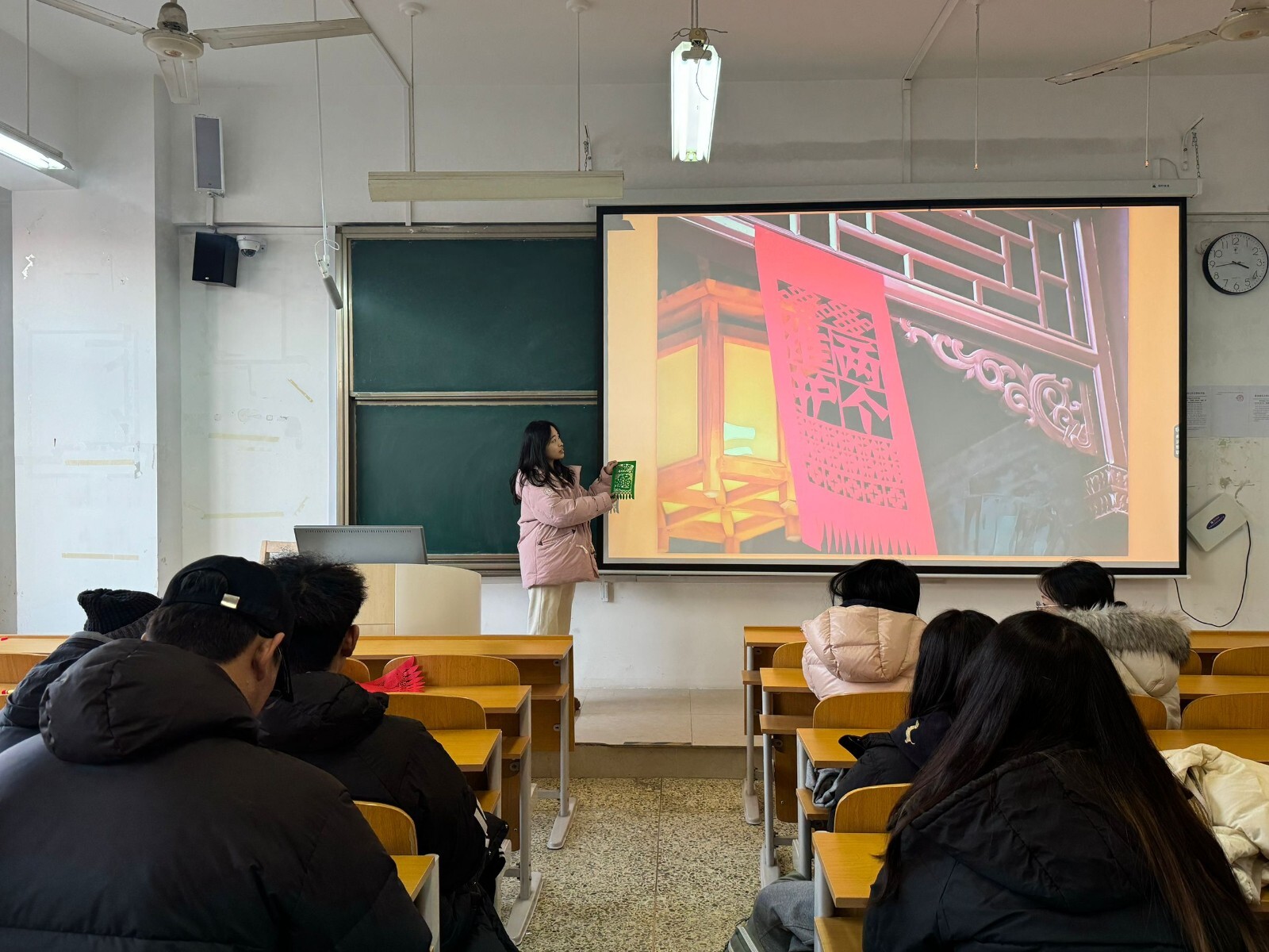 图为 “彩笺点云楣” 实践队在展示过门笺的艺术特色。邵俊涵 供图