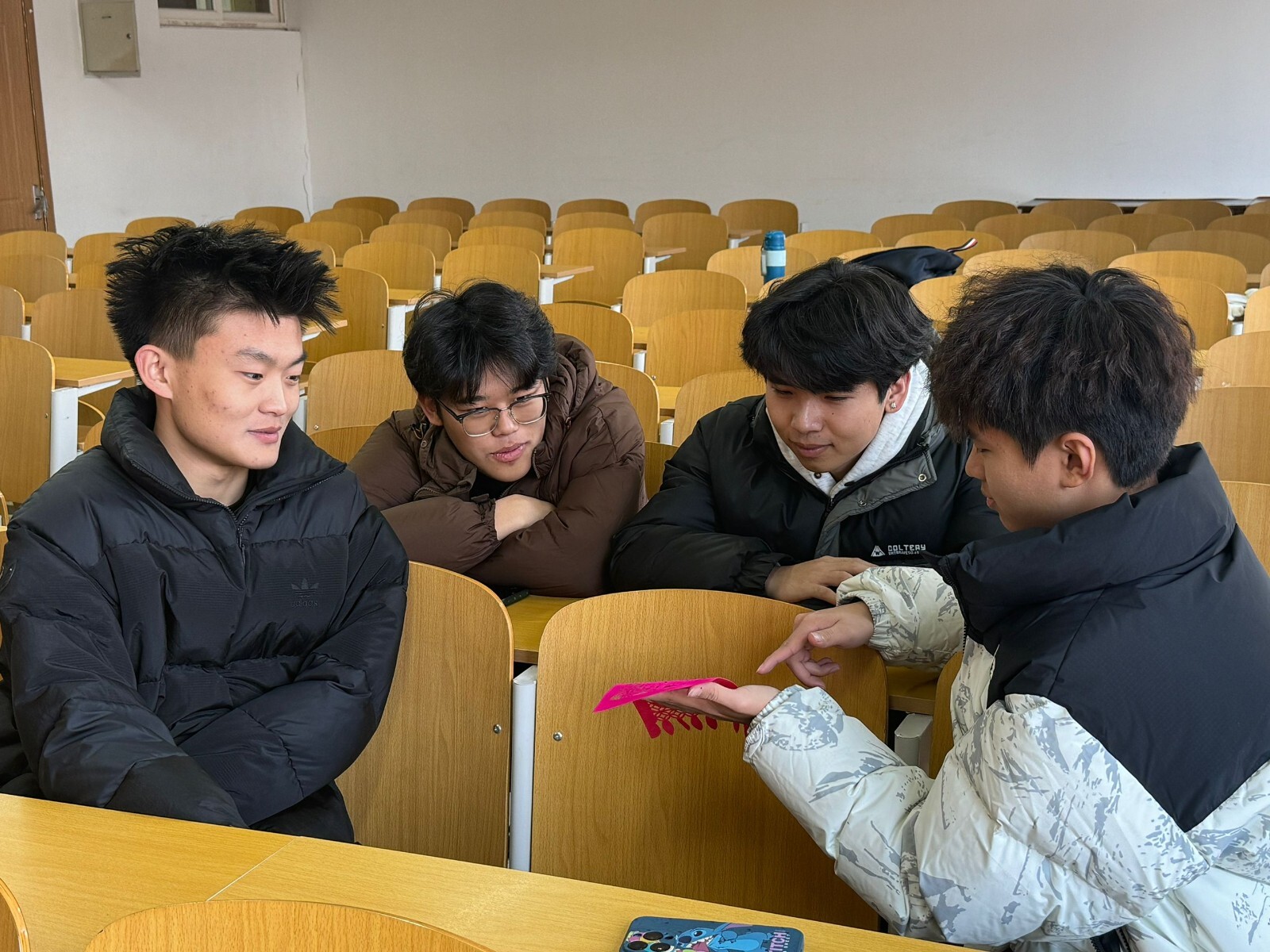 图为 “彩笺点云楣” 实践队队员在讨论制作过门笺的独特之处。邵俊涵 供图