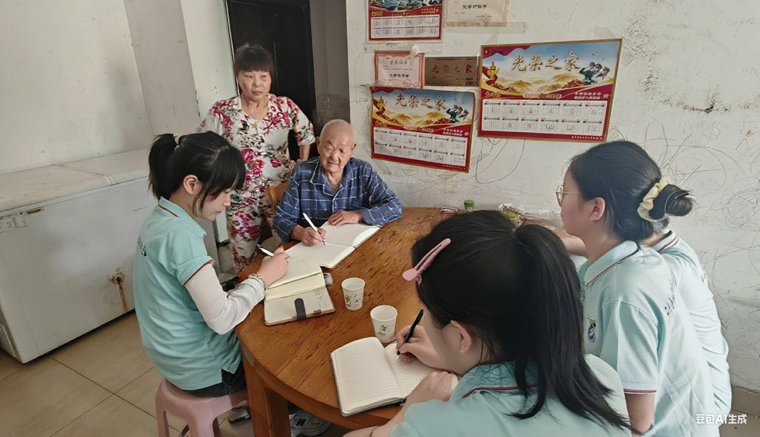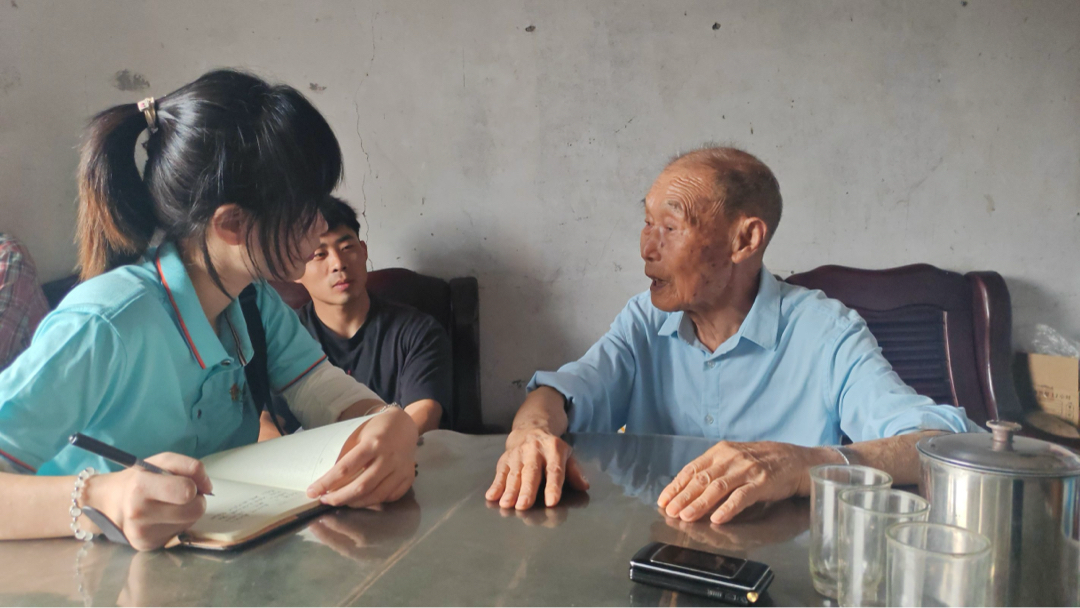 图为实践团成员向老兵李兴林提问。 陈超 供图