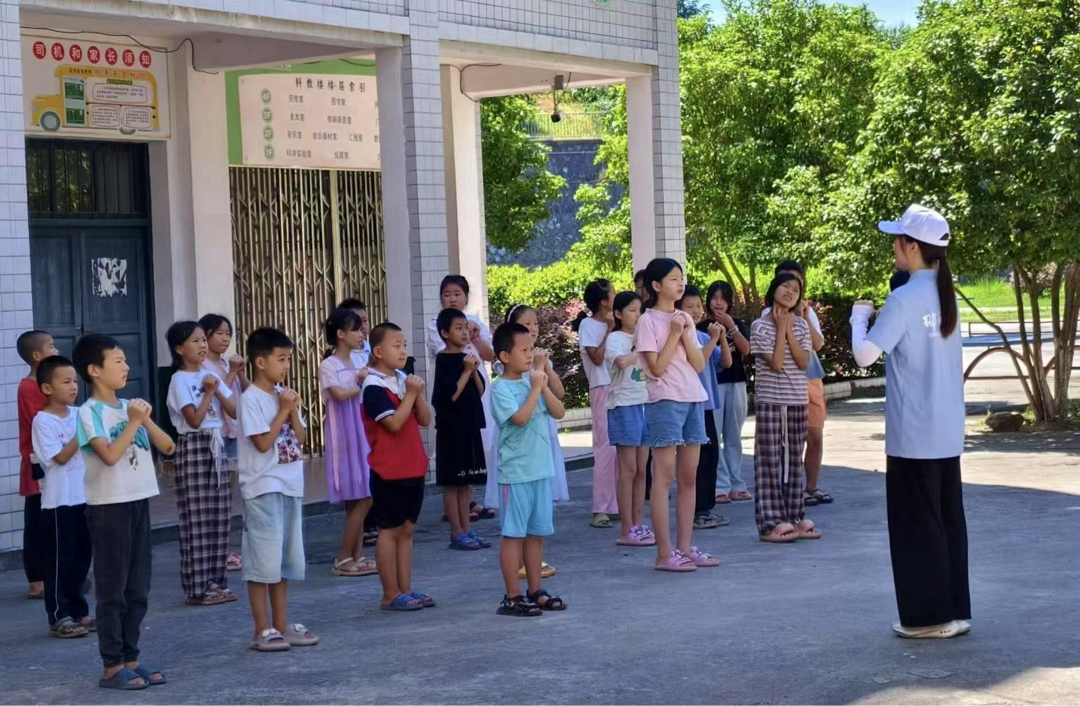 啦啦操课程是此次三下乡的重点内容之一,因此服务团成员们精心编排了适合孩子们年龄和身体状况的啦啦操套路,并从基础的步伐和手势教起。课堂上,教学志愿者干练地说出口令,队员们示范着整齐有力的动作,孩子们起初还有些羞涩,但在队员们的鼓励下,逐渐放开自我,跟着口令节奏欢快地舞动起来。