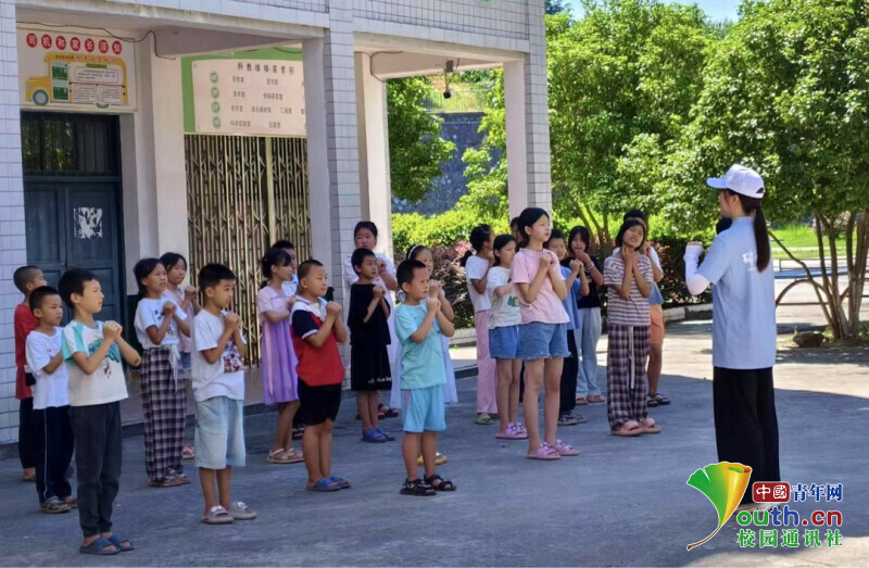 图为“以体强乡,用爱筑梦”教育关爱服务团成员对啦啦操课程进行教学 龚莹 供图