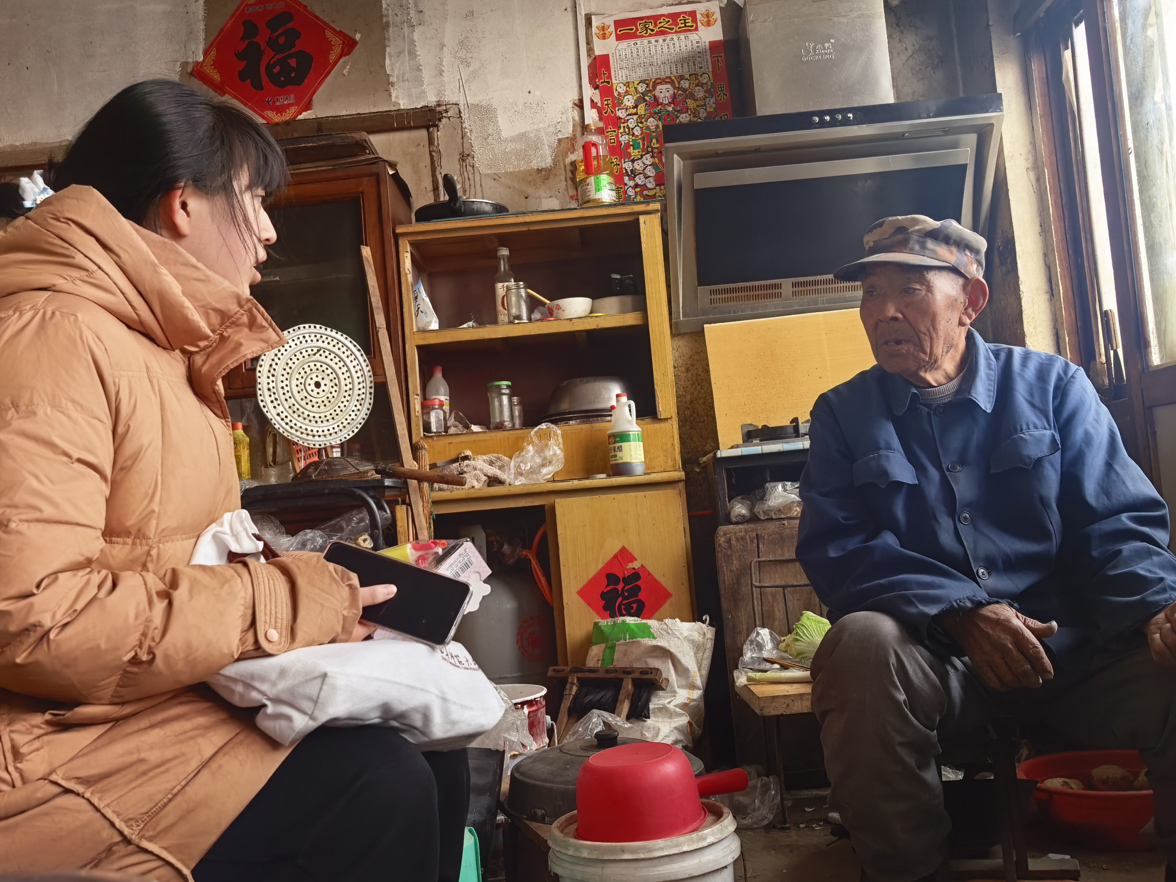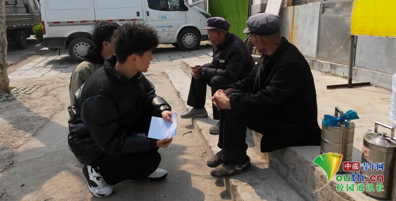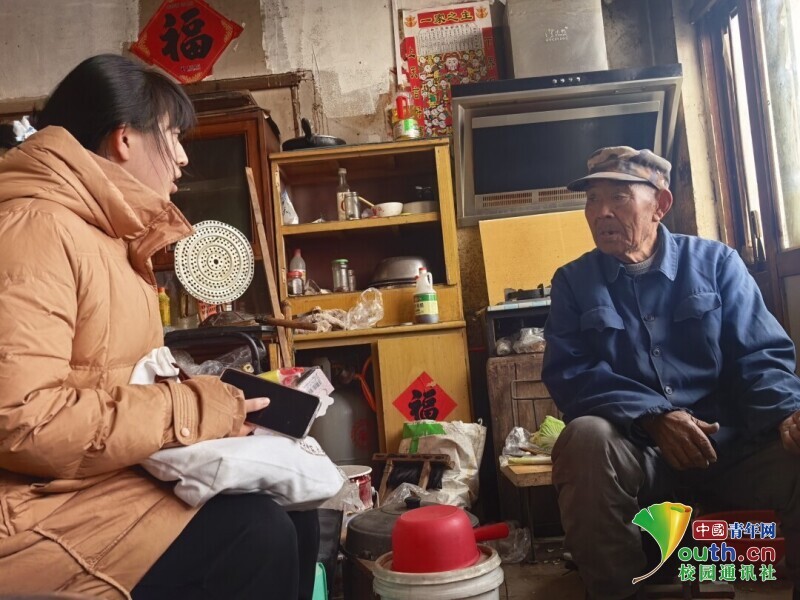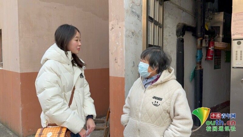 图为微言小队成员采访凤凰社区居民关于养老服务的自身体验。赵一依 供图