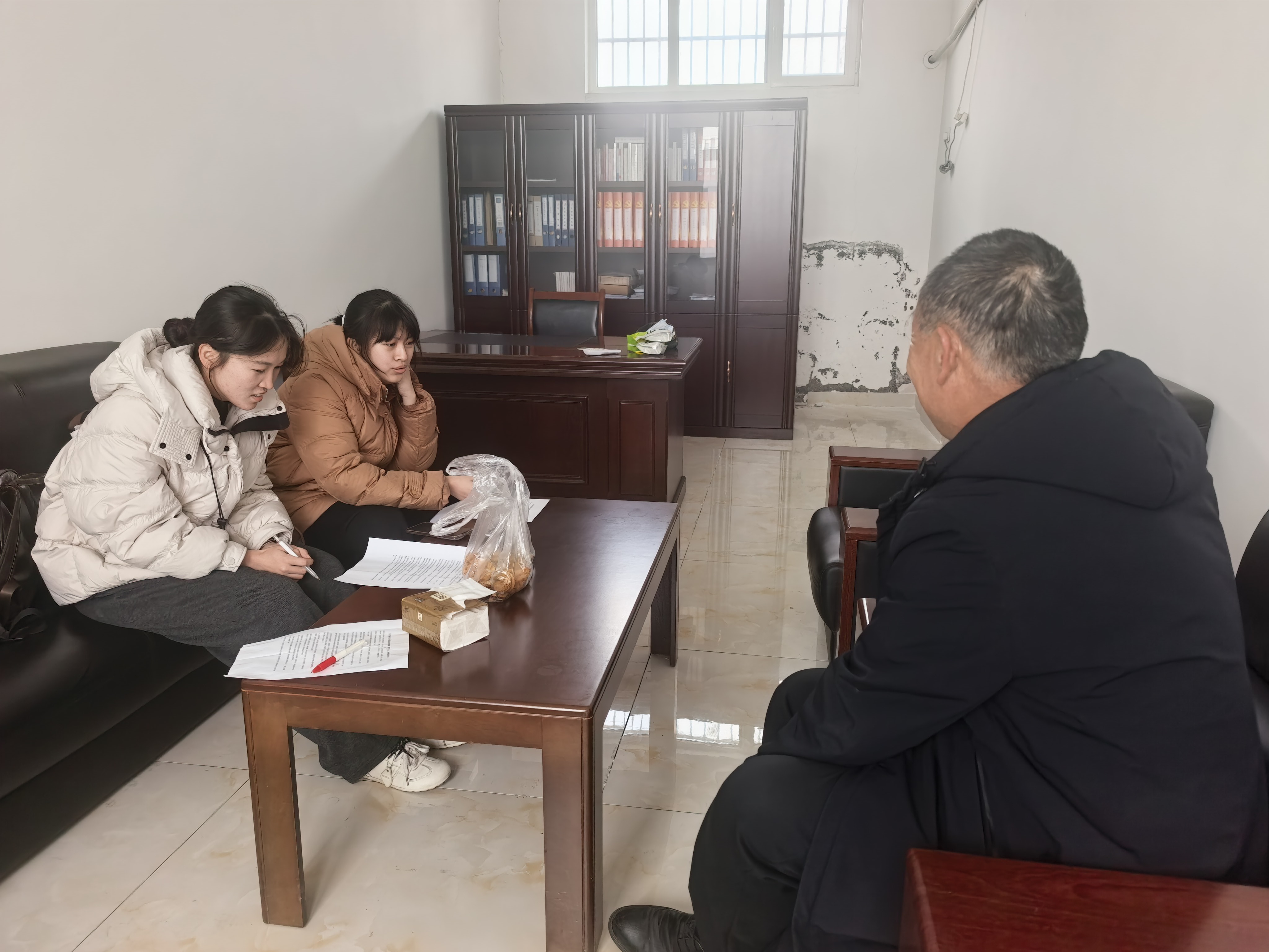 图为微言小队成员询问社区工作人员养老服务的具体实施情况。赵一依 供图