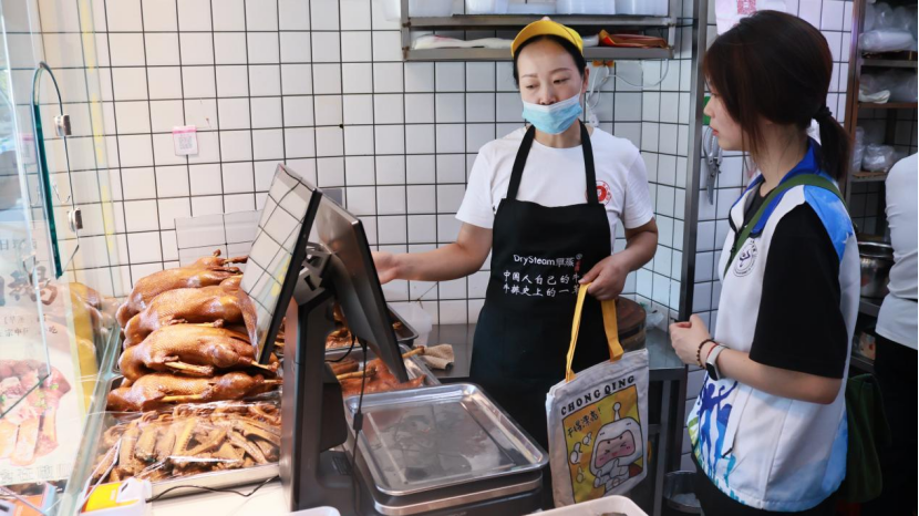 图为店主为实践队员介绍卤鹅的做法。代星昱 供图
