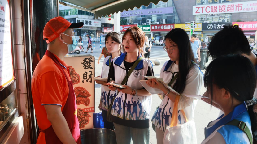 图为卤鹅师傅为实践队员介绍客源。代星昱 供图