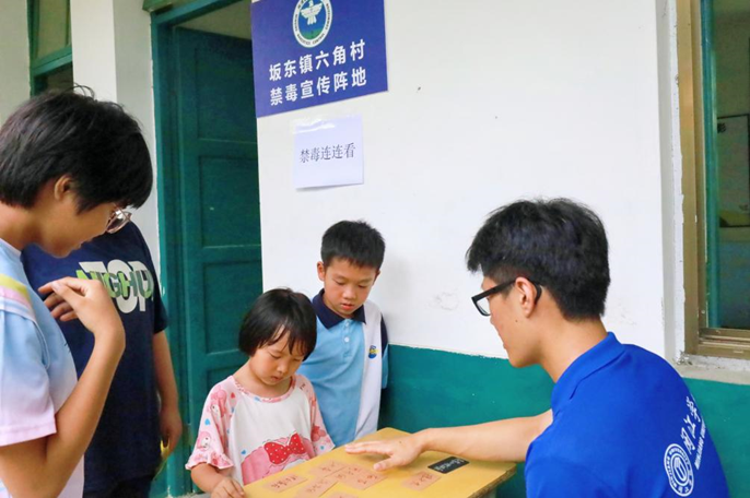 实践队员们组织策划并开展“学法识毒,守心护童”法治文化游园活动。用轻松有趣的方式并结合专业知识帮助同学们学习禁毒知识,如“禁毒连连看”“禁毒知识竞答”“决策树”等小游戏,激发了同学们的参与热情。在这些生动的互动中,同学们不仅认清了毒品的种类和危害,更在他们心中种下了“珍爱生命,远离毒品”的种子。
