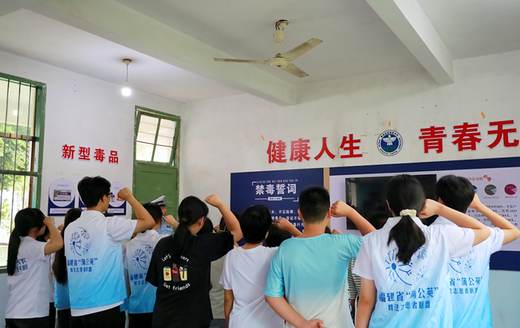 图为实践队员与同学们进行禁毒宣誓。林贝宁 供图