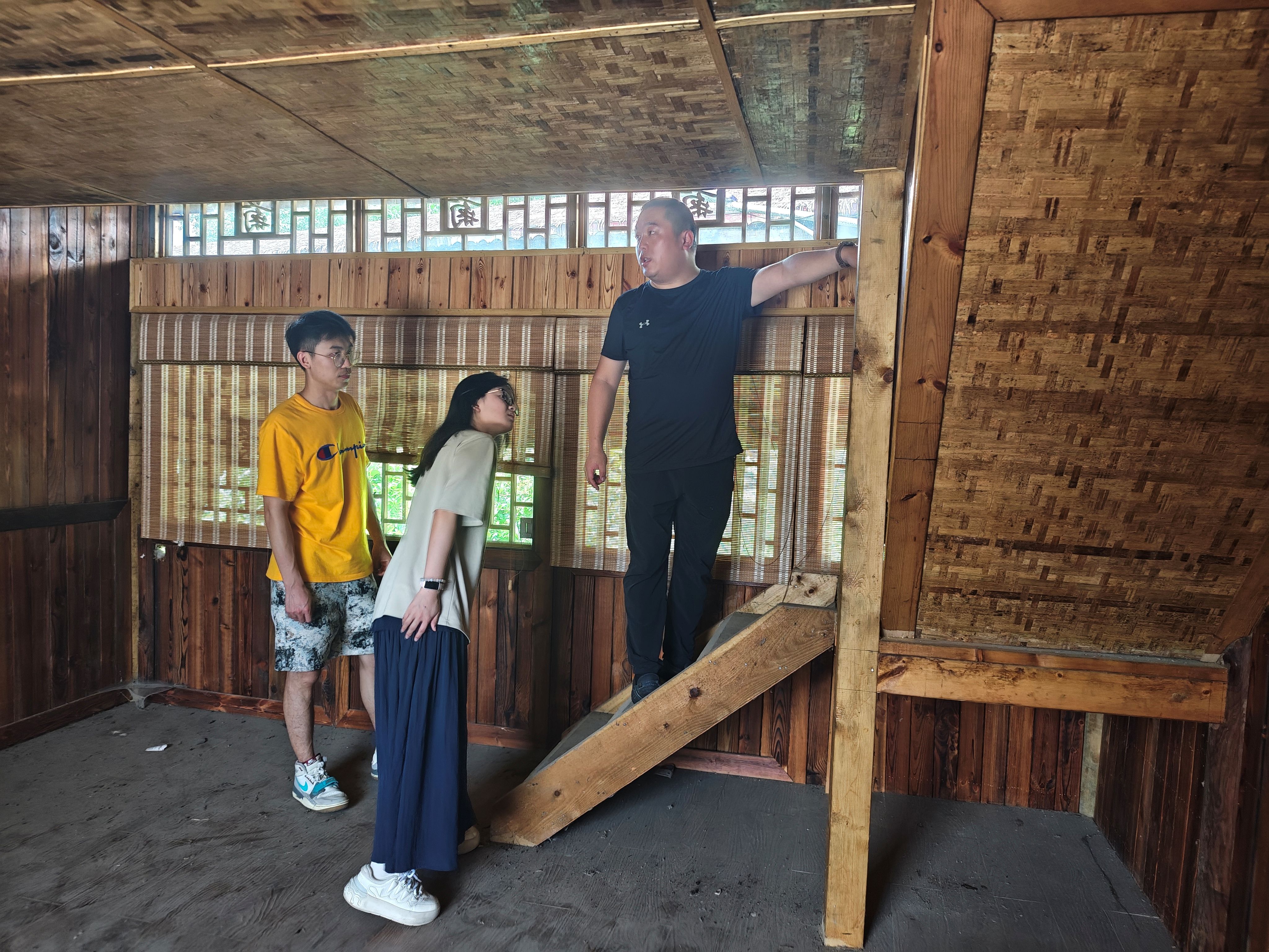 苟坝会议旧址的黔北木构四合院里,部分木构件存在老化腐朽、柱子倾斜等问题。实践团成员细致观察并记录榫卯节点磨损程度和构件虫蛀位置,系统梳理建筑现存问题,为后续保护工作积累第一手数据。