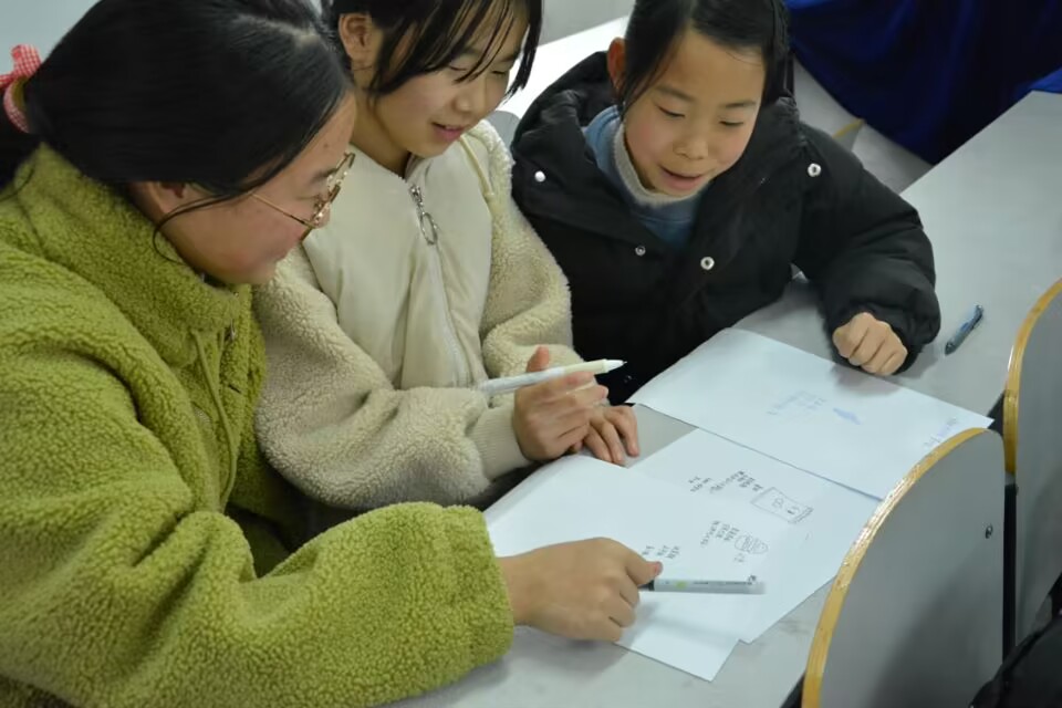 图为在广告创作环节小学生们积极讨论、分享自己的设计。 中国青年网通讯员 席奕蕾 摄