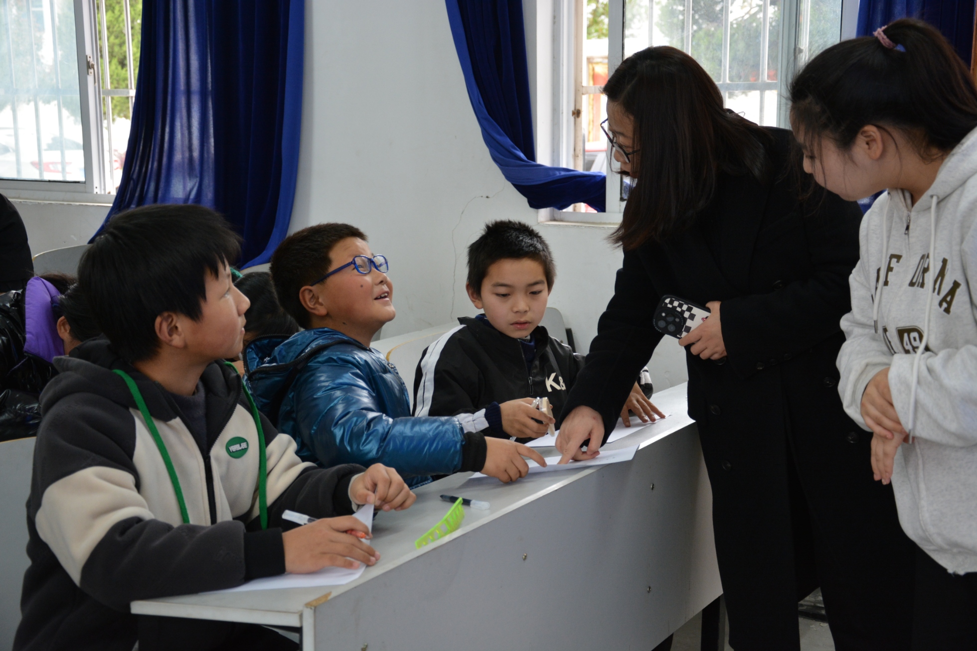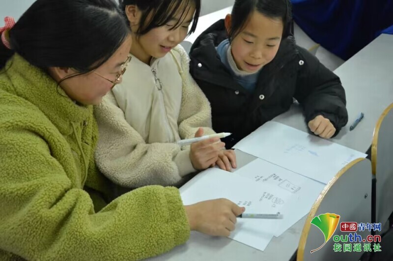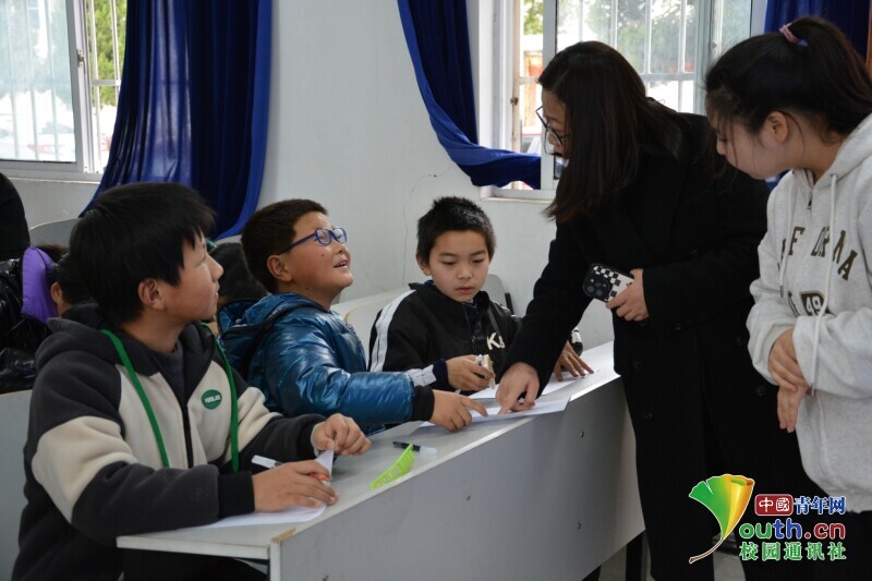 图为宣讲团队指导老师在与小学生们交流。 中国青年网通讯员 席奕蕾 摄