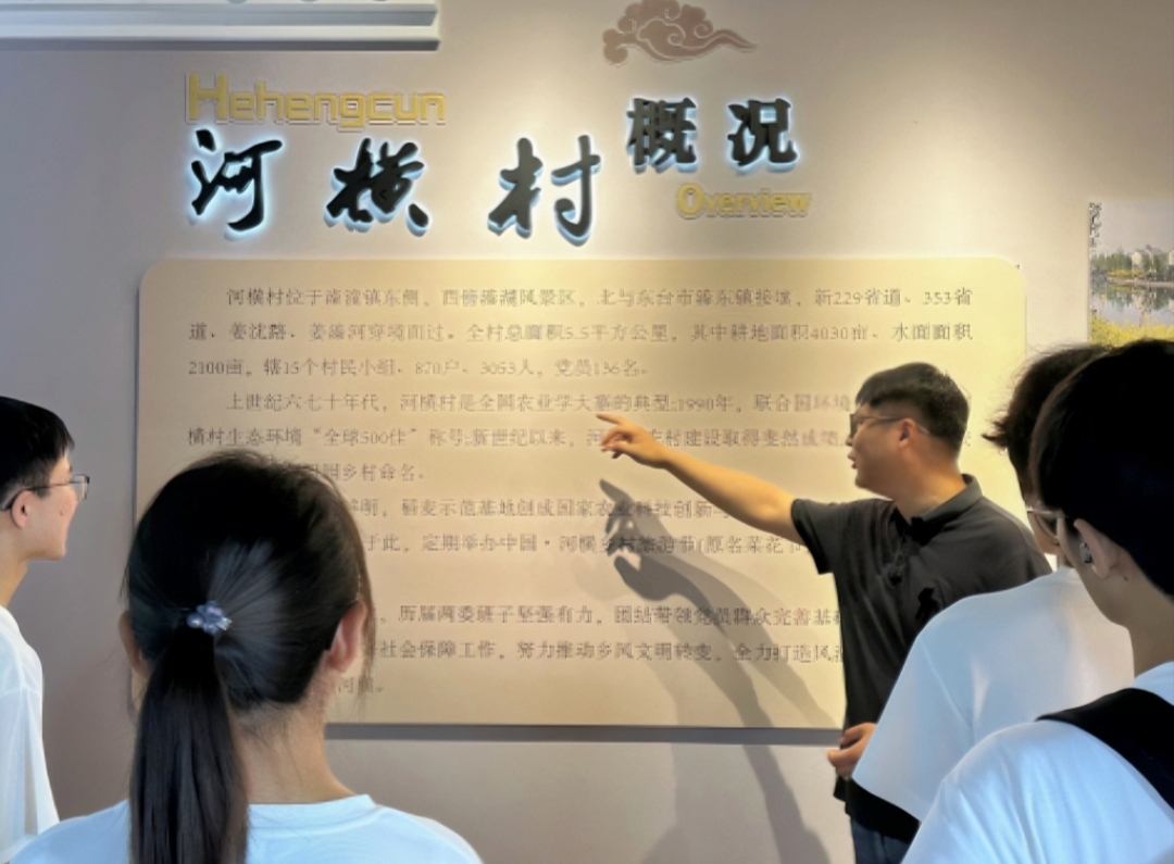 图为实践队员与村委一起参观河横村史馆。中国青年网通讯员 何勰 供图