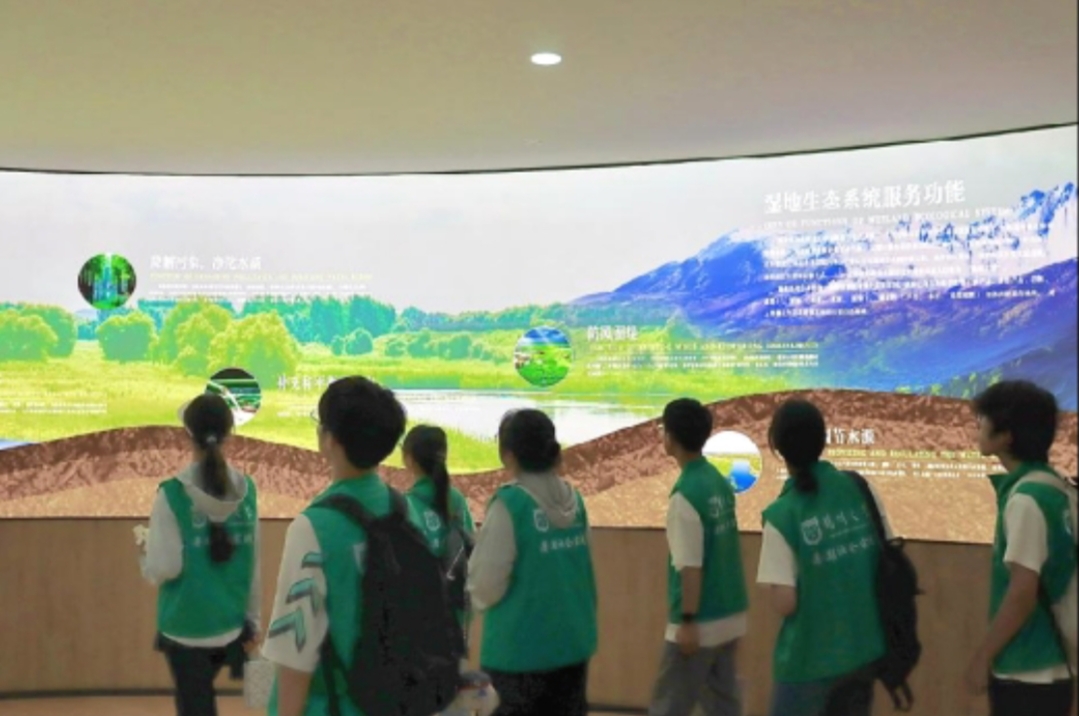 图为实践队员参观溱湖湿地科普馆。中国青年网通讯员 何勰 供图