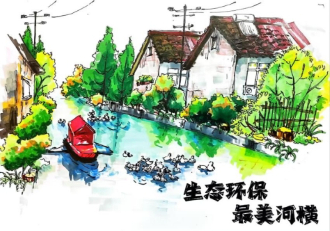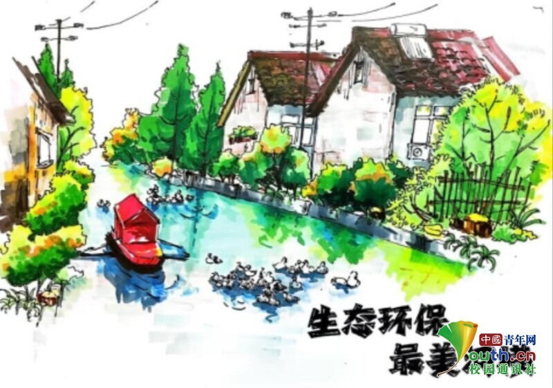 图为实践队员绘制的河横村图片。中国青年网通讯员 何勰 供图