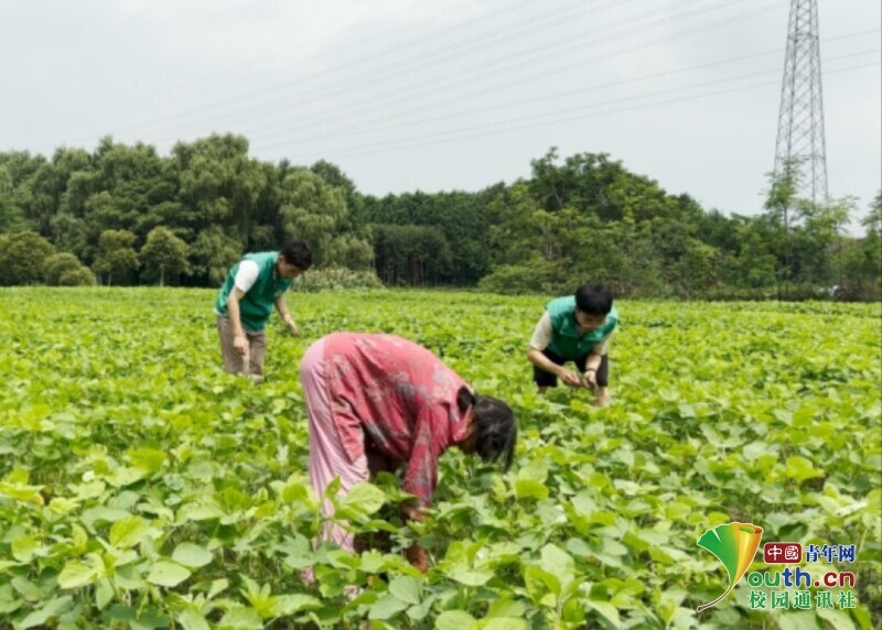 图为实践队员在田里帮助村民干农活。中国青年网通讯员 何勰 供图
