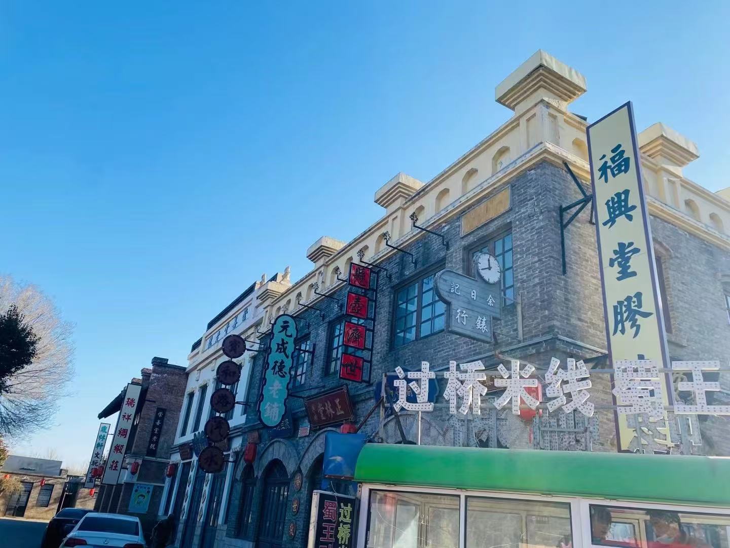 在影视城的一角,还矗立着一座精美的牌坊,上面“弘佑天民”四个大字苍劲有力。牌坊下,游客们纷纷驻足拍照,留下美好的瞬间。牌坊周围,张灯结彩,洋溢着喜庆的氛围,仿佛在迎接每一位远道而来的客人。此外,影视城内还有许多富有文化内涵的景点和设施。比如,那口古老的阿胶井,旁边的介绍牌详细讲述了它与阿胶制作的深厚渊源,让实践队员们对阿胶文化有了更深入的了解。还有那些栩栩如生的雕塑,如教书先生授课的场景,生动地展现了古代的教育文化和生活场景,成为了影视城一道独特的风景线。