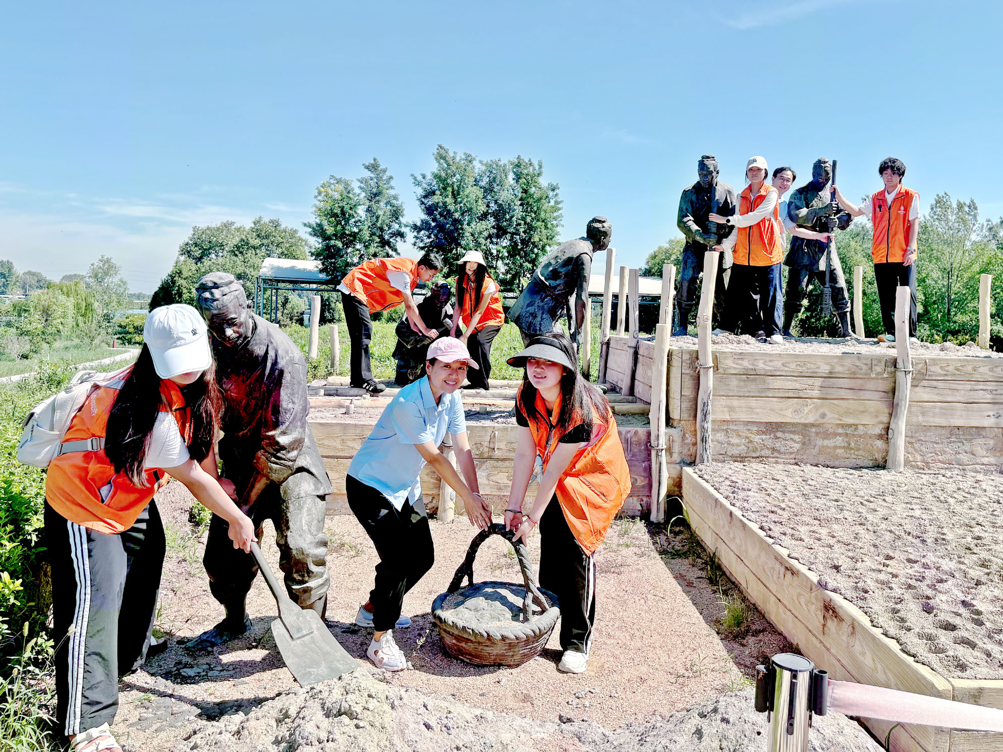 图为全体师生感受齐国故城夯筑场景。郝茜 供图