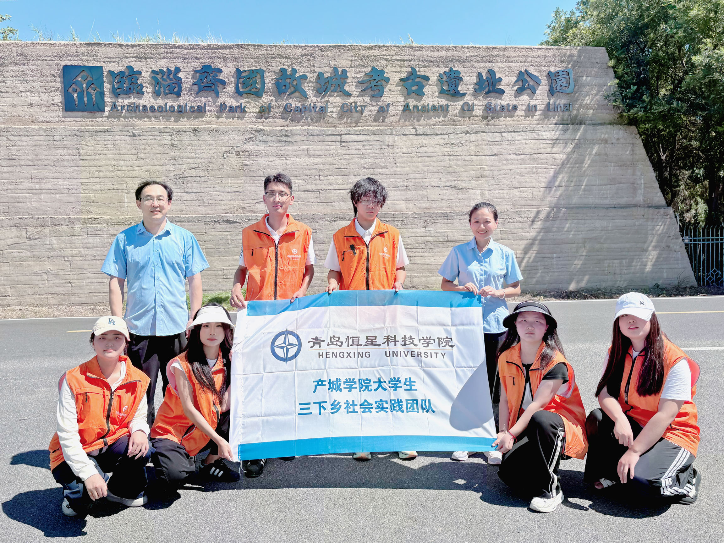 图为全体师生在临淄齐国故城考古遗址公园大合照。郝茜 供图