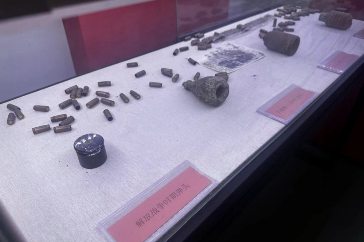 图为干仕村红色纪念馆中的历史武器。袁若涵 供图