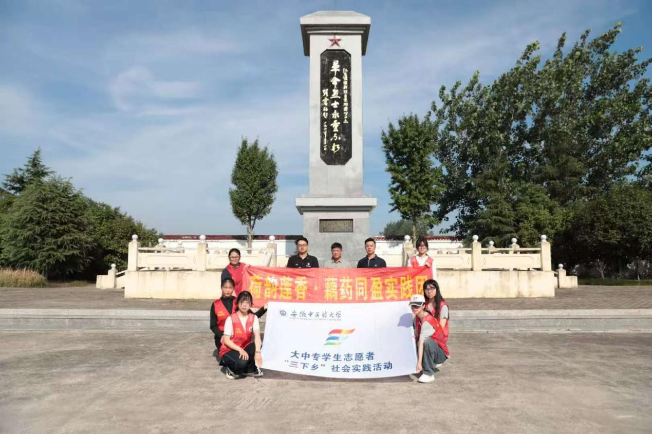 图为实践团在烈士陵园碑下的合影,此行既是红色之旅,也是大学生深入农村学习实践的重要一课。孙冰倩 供图