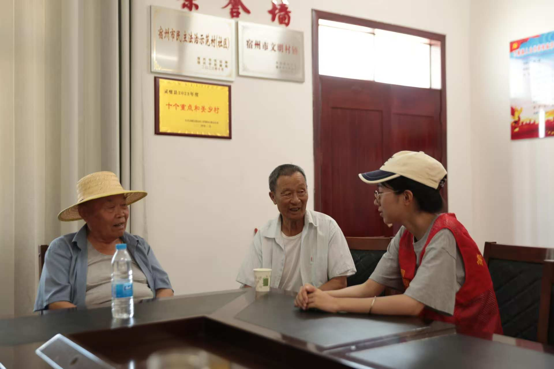 图为队员们采访老人,了解其生活状况和收入情况,并收集老人对程庙村的发展和乡村振兴的建议。 陈旒佳月 供图