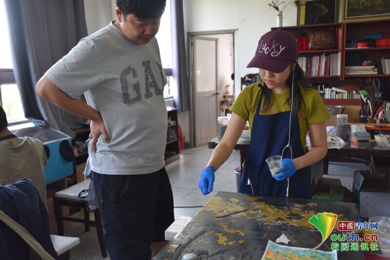 图为团队成员体验雕漆和点螺工艺。孙汉阳 供图