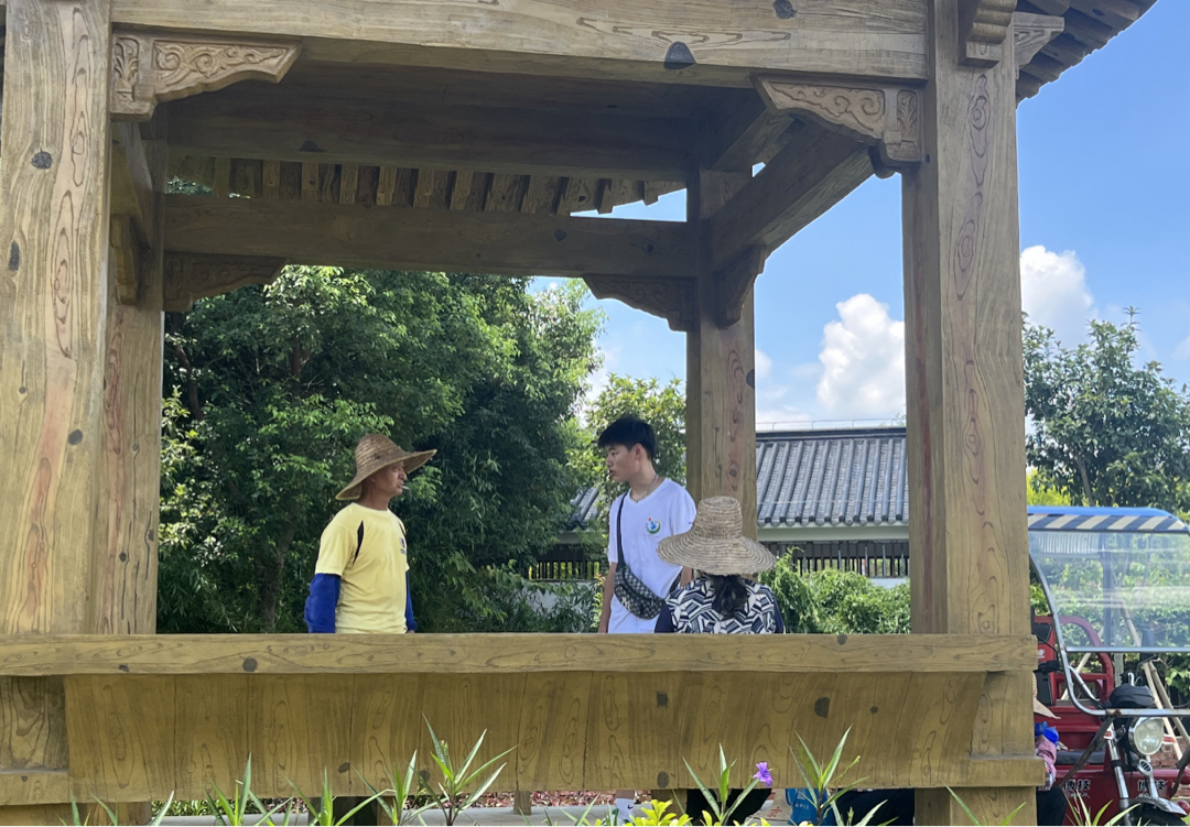 图为实践队员向当地绿化工人了解村内绿化情况,以及其主要工作内容。中国青年网通讯员 李青青 供图
