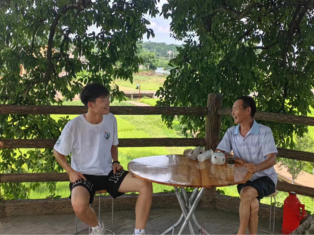 图为实践队员与当地村民谈论当今美好生活与政府帮扶政策的场景。中国青年网通讯员 宋佳怡 供图