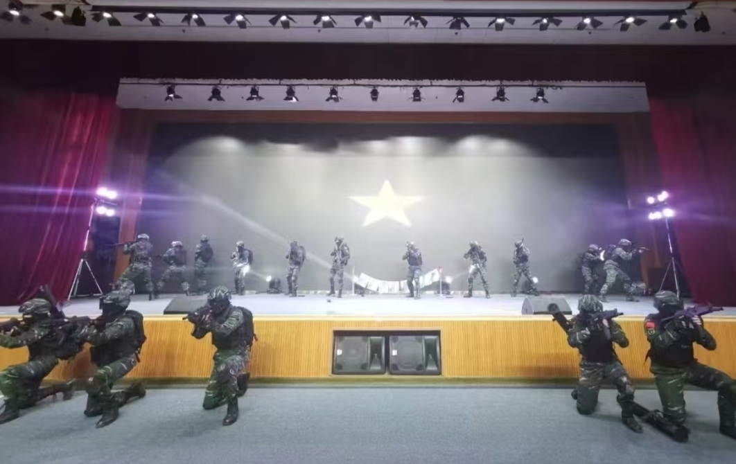 图为社工委办公室带来的节目《逆战》。舞台上,成员们全情投入,以充满力量的表演,展现出昂扬向上的精神风貌。邹良宝 供图