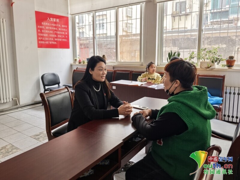 图为居委会陈主任对居民陈阿姨展开调研。许如玉 供图