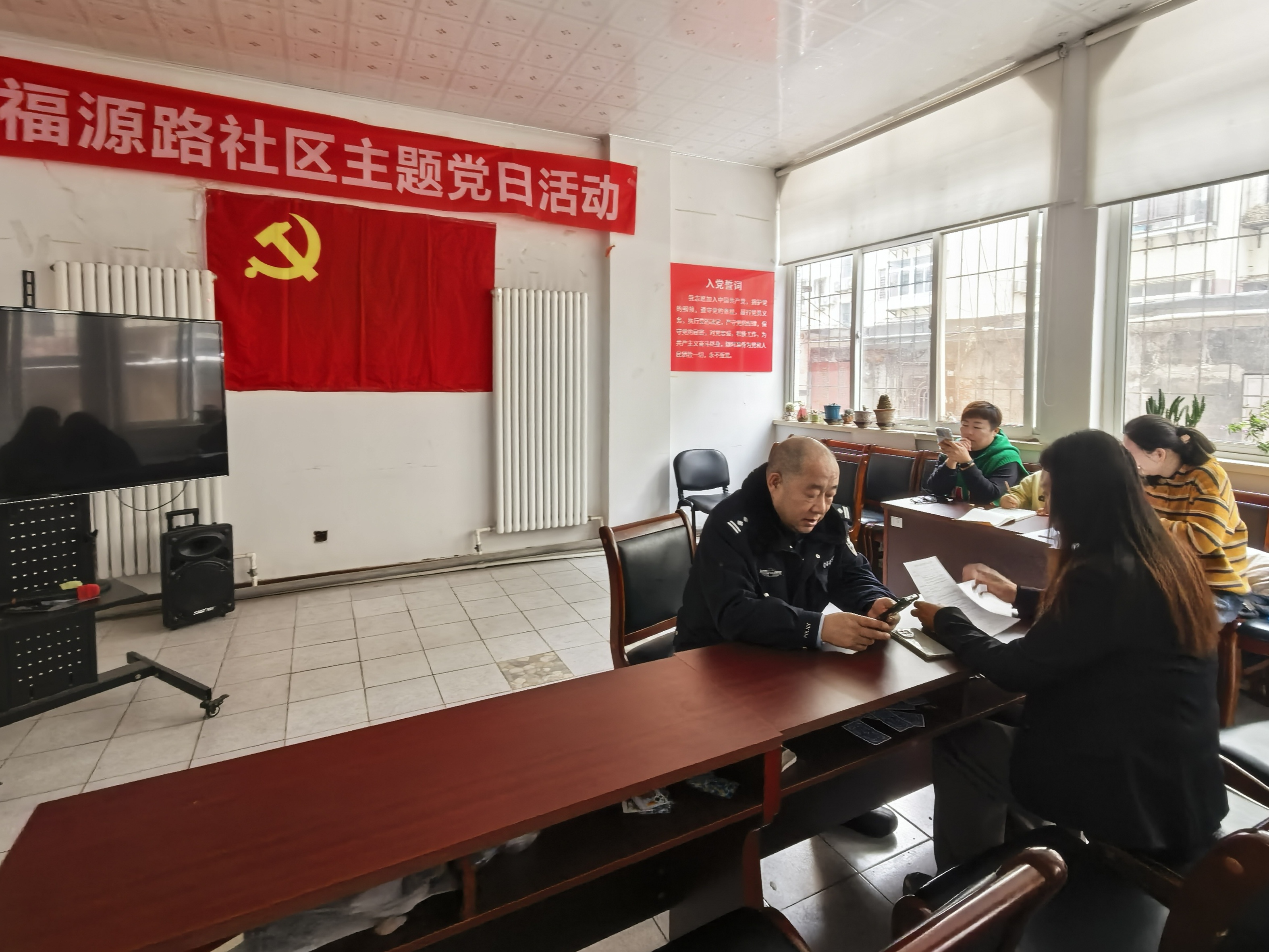 实践活动当天正值福源路社区开展主题党日活动,有许多不同年龄段的居民来到了社区居委会参与活动。活动结束后,陈主任与史警官积极协助许如玉对这几位居民展开访谈,询问他们对邻里关系的感受。走访中,多位老年居民表示,子女工作繁忙,日常缺乏陪伴,希望社区能组织更多敬老爱老活动;年轻上班族则提到,平时早出晚归,对社区事务了解甚少,希望通过便捷的方式参与邻里互助。访谈过程中,许如玉向居民发放调研问卷,对视力不佳的老人逐题宣读内容、协助填写,确保收集到的每一份问卷都能真实反映居民的需求与期盼。