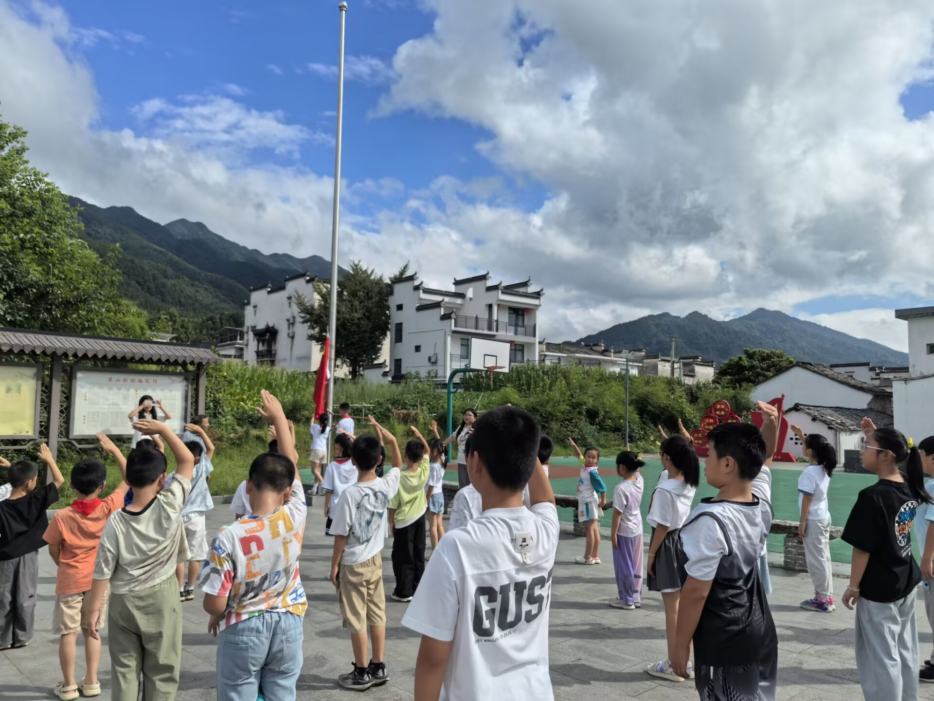 图为孩子们周一升国旗行少先队礼。王情宇 供图