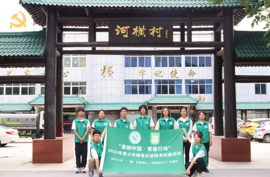 图为“‘菁’彩青春心,扬宣绿色行”暑期社会实践队员于河横村党群服务中心合影留念。河横村村民 供图