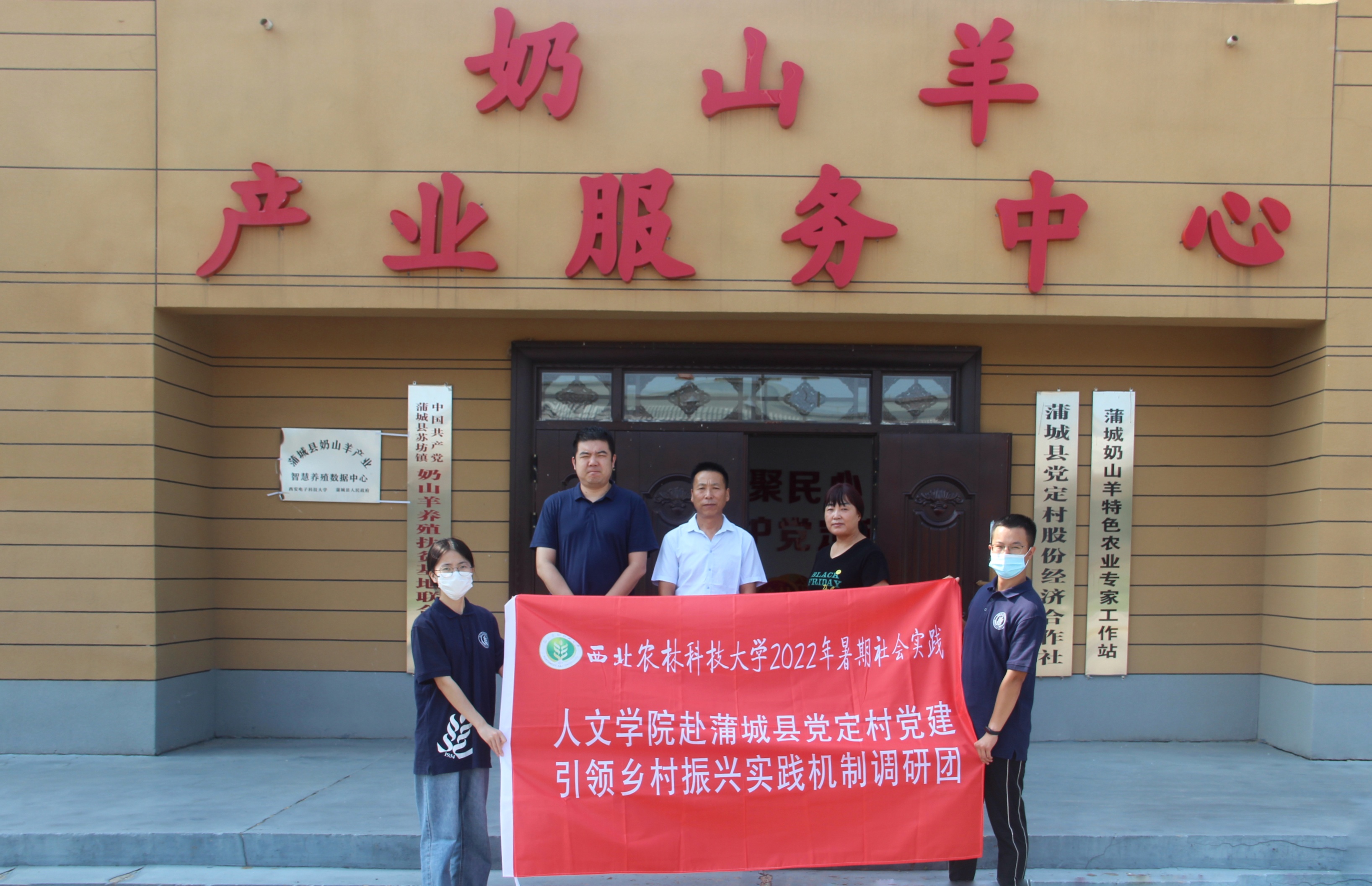图为调研队员在党定村奶山羊产业服务中心合影。中国青年网通讯员 魏雅瑄 摄