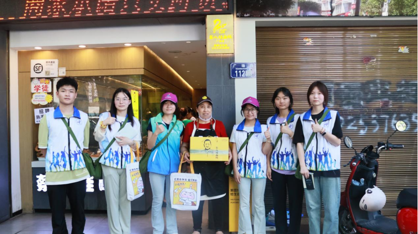 图为实践队员赠送伴手礼后与卤鹅店工作人员合影留念。代星昱 供图