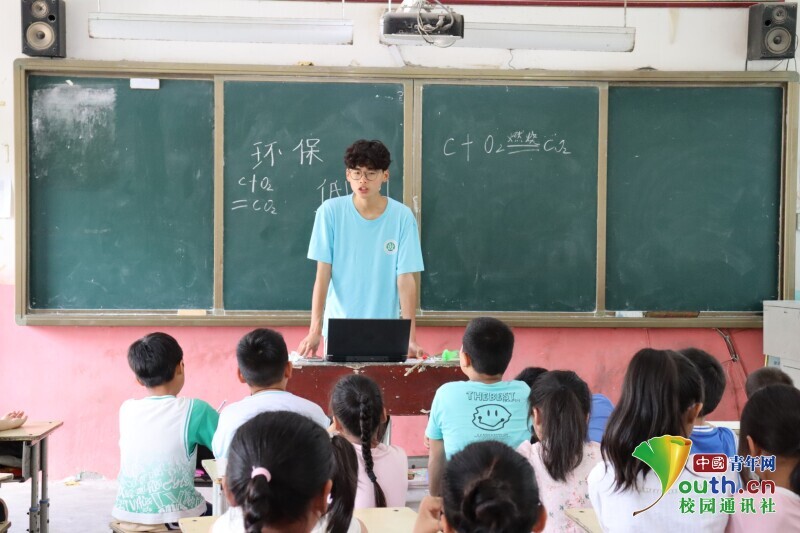 图为实践队员谢知航为孩子们讲述环保的重要性。中国青年网通讯员 邢玉艳 供图