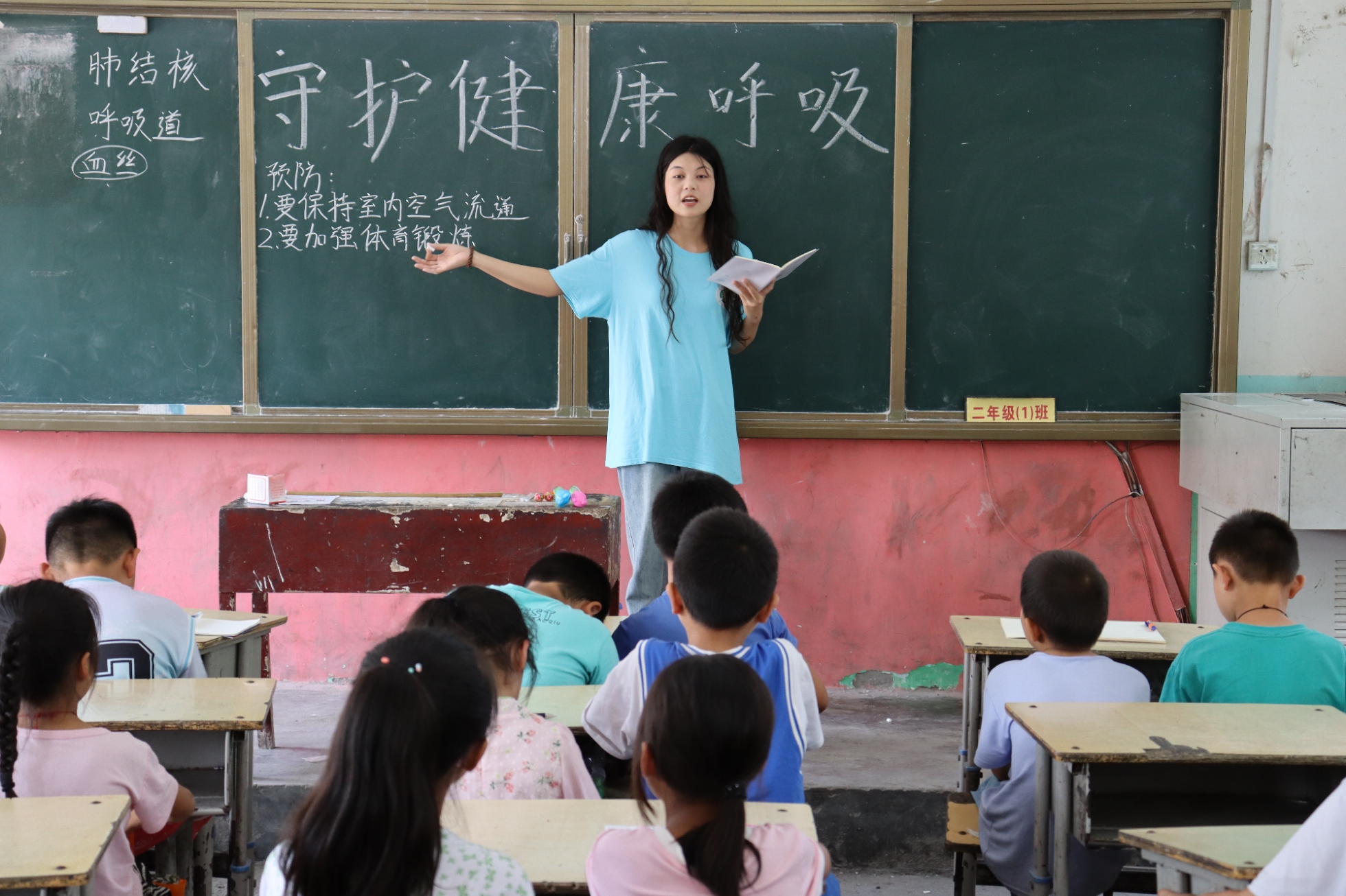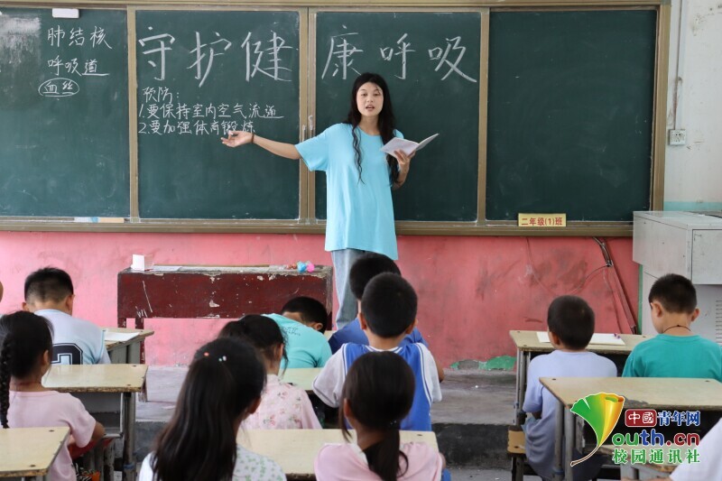由实践队员闫佳敏与李欣雨为孩子们开展肺结核疾病的知识小课堂。首先,她们用通俗易懂的语言为孩子们讲解了肺结核疾病的症状;然后,讲解了肺结核疾病的传播途径,即通过咳嗽、飞沫、打喷嚏等,并向孩子们强调了预防的重要性;最后,她们向孩子们详细地讲述了预防措施,并通过提问方式,加深孩子们对肺结核疾病预防的理解。
