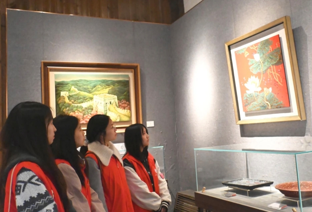 图为中心成员参观脱胎漆器作品。刘奕欣 供图