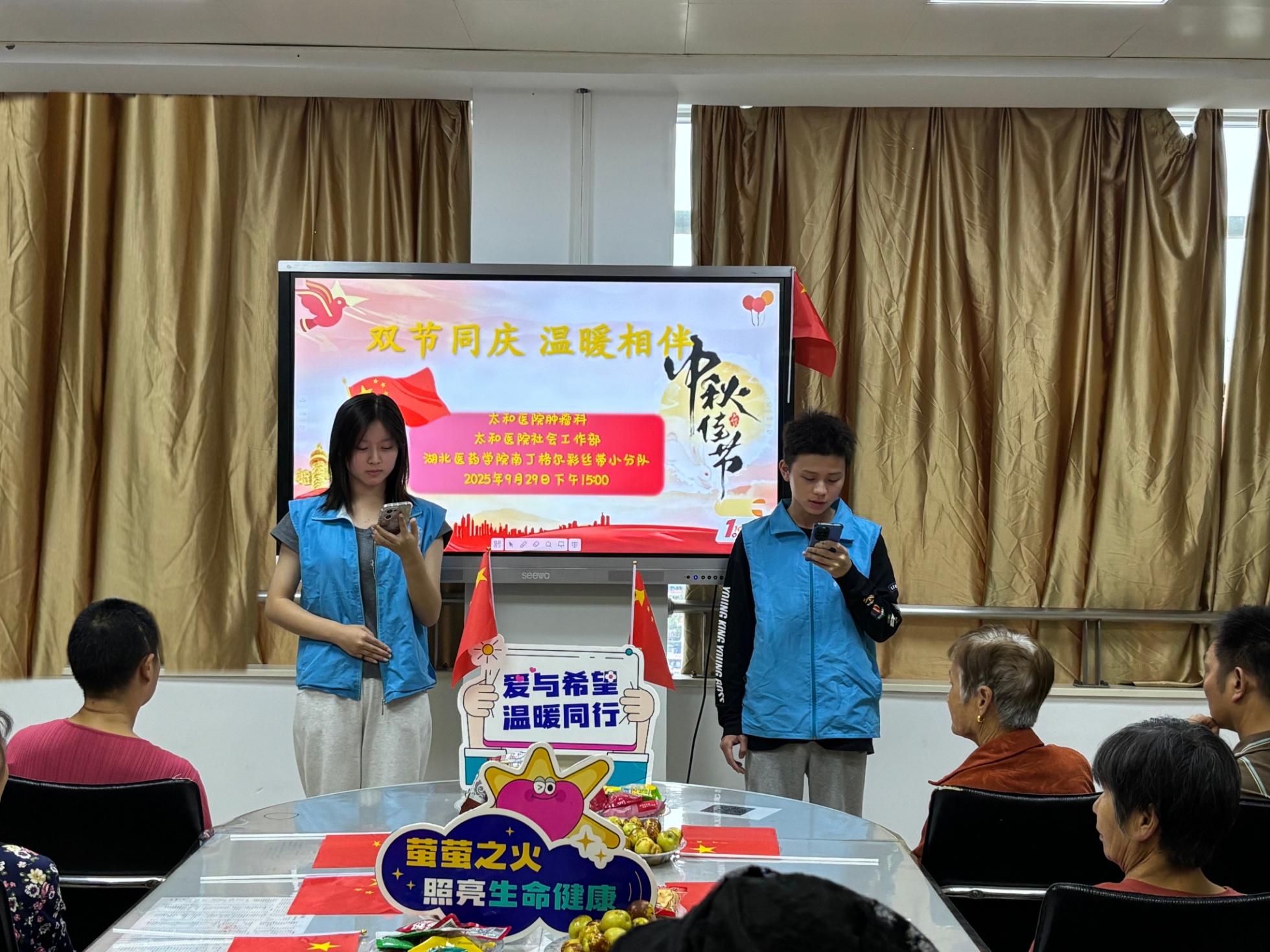 9月29日下午,湖北医药学院护理学院南丁格尔志愿服务队彩丝带小分队联合湖北省十堰市茅箭区太和医院肿瘤科,为20位肿瘤患者及家属,策划了一场兼具健康科普与温情互动的重阳节活动,用专业与爱心为秋日病房注入别样暖意。
