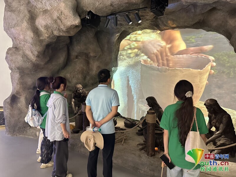 在万年县稻作文化馆内,实践队员们深入学习了万年县悠久的稻作文化起源与发展历程。从泛黄的史料中感受古人的农耕智慧,直观感受了技术进步带来的巨大变革。队员们还通过多媒体互动体验,沉浸式了解了从野生稻到栽培稻的驯化过程。此外,队员们还体验了沉浸式飞行影院,在高空视角下见证了万年城市的发展与稻作文化的演进,感受科技让历史“活起来”的魅力。