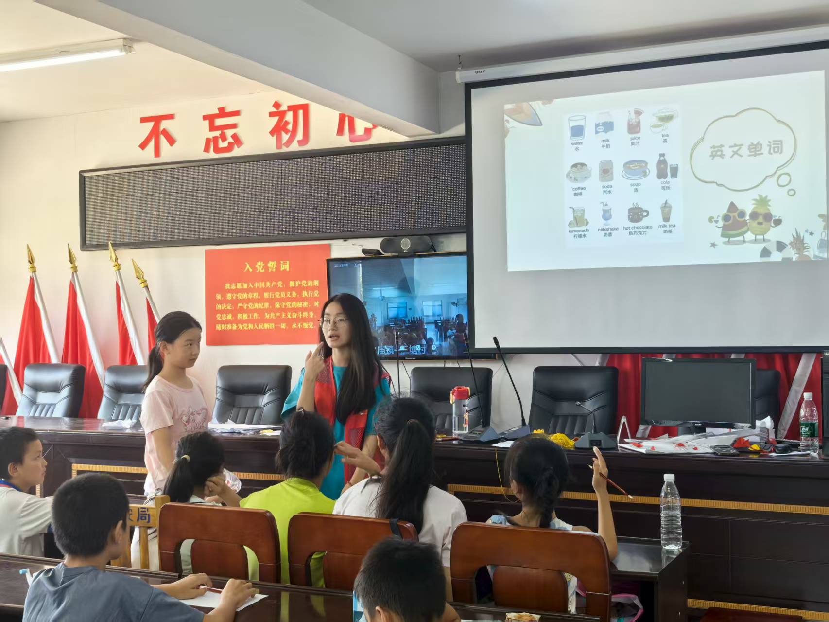 图为团队成员在进行趣味英语教学。赵馨雅 供图