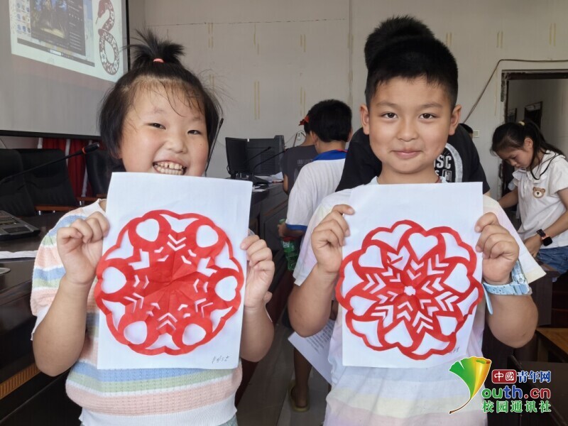 图为团队成员开展剪纸活动。蒋圆 供图