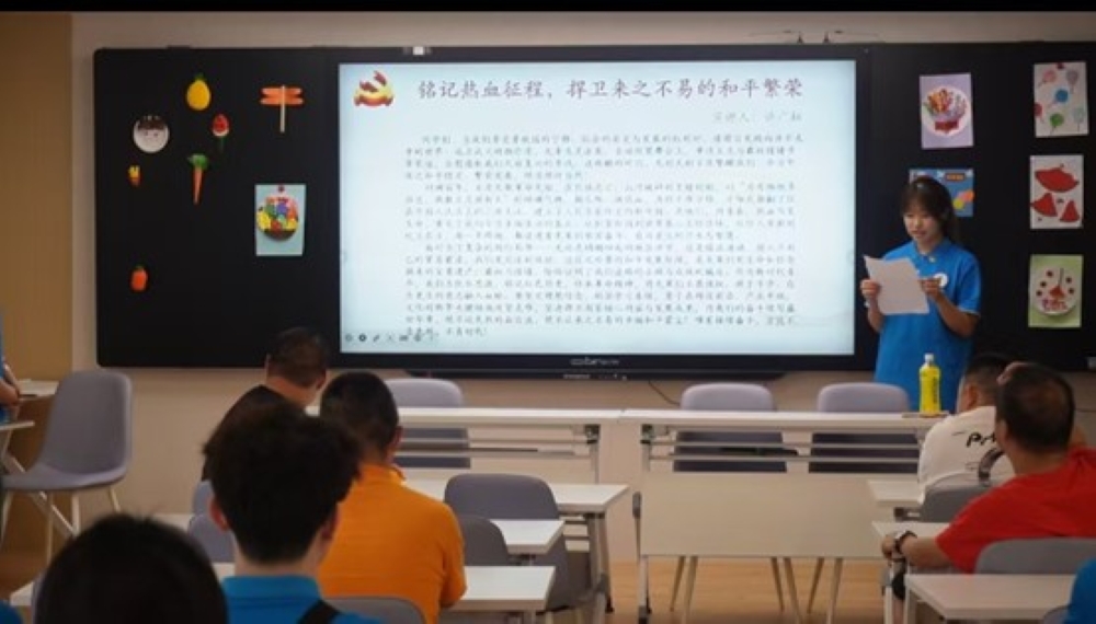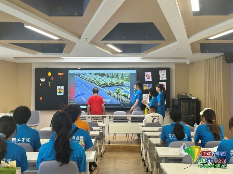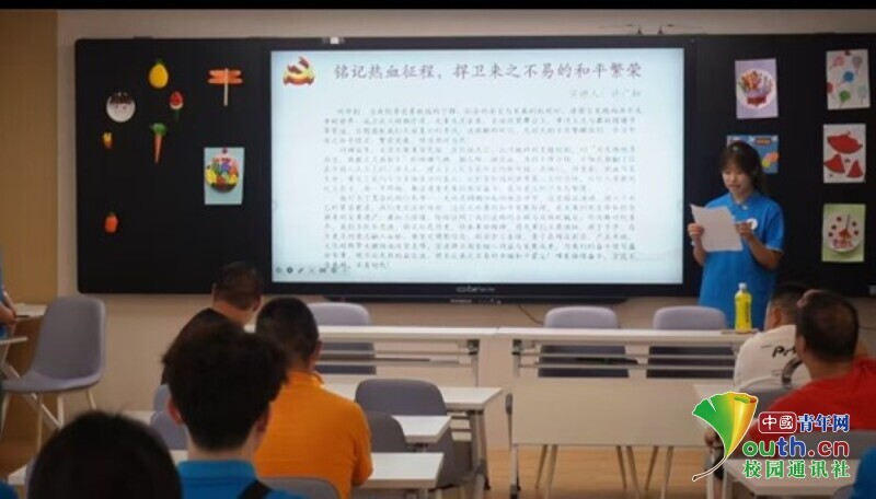 图为实践队员带领大家学习《强军战歌》。翟涵悦 供图