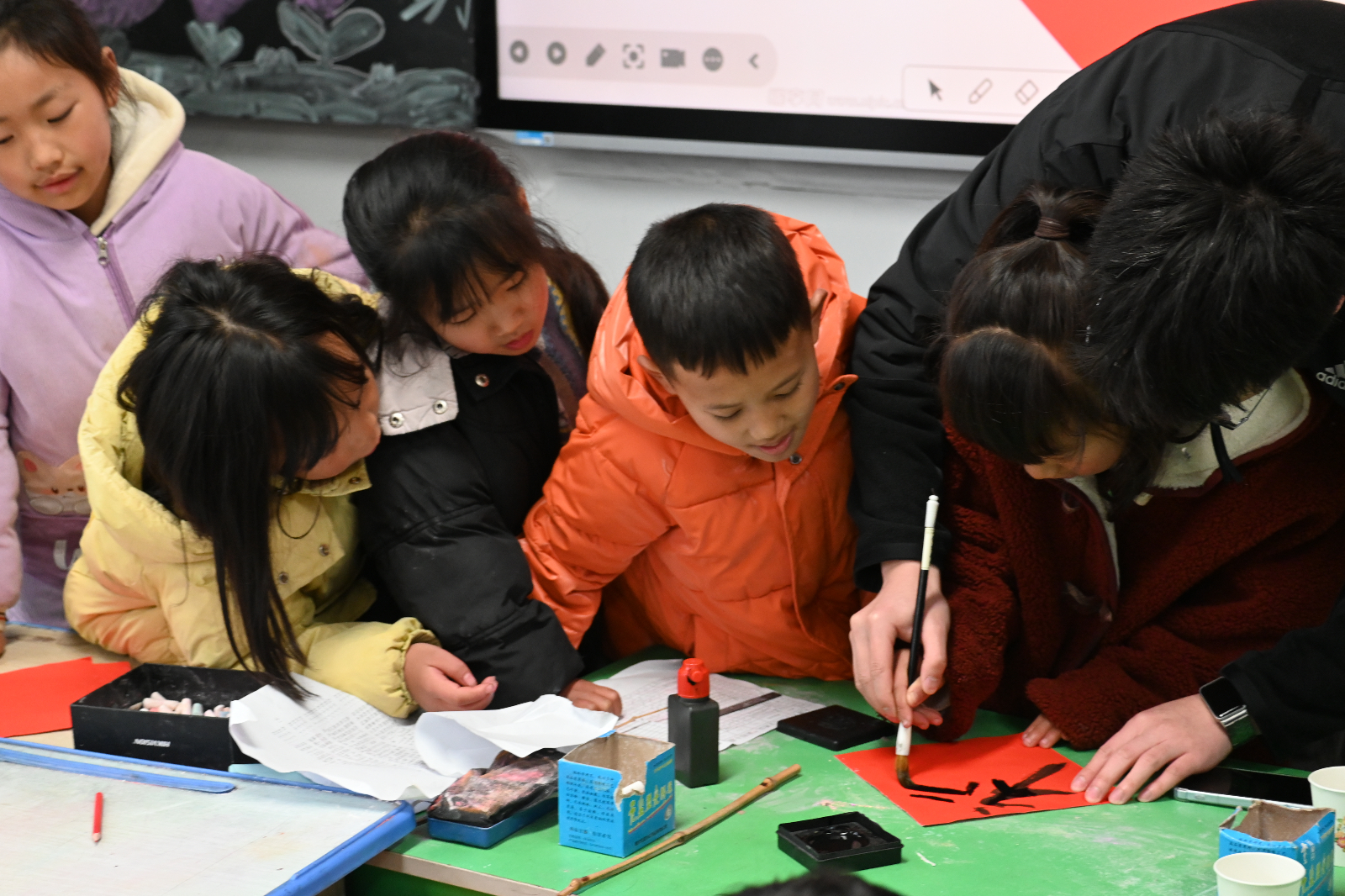 一张红纸铺开,一双双小手轮流上前。一笔,两笔,三笔……一个笔迹稚嫩却结构完整的“福”字渐渐显现,周围还被孩子们画满了苗族服饰上常见的蝴蝶与花草纹样。近日,在四川珙县玉和苗族乡中心小学的课堂上,一场特别的“共创”正在天津大学“星火”支教队队员的引导下进行。