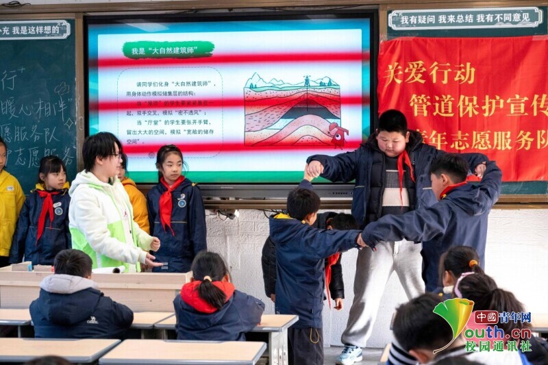 为切实增强青少年儿童的安全自护意识,宣传普及管道安全相关知识,12月15日,江苏师范大学“安全童行,暖心相伴”志愿服务队走进徐州市铜山区实验小学,面向低年级学生开展了一场以“管道安全助成长,能源安全记心间”为主题的管道保护志愿宣讲活动,通过管道知识讲解、场景模拟游戏、动手搭建模型等多维互动安全课堂,旨在激发同学们对能源科学的兴趣,加强对管道安全的重视,此次宣讲不仅提升了同学们的自我防护能力,也强化了其能源安全意识。(通讯员 施科任)