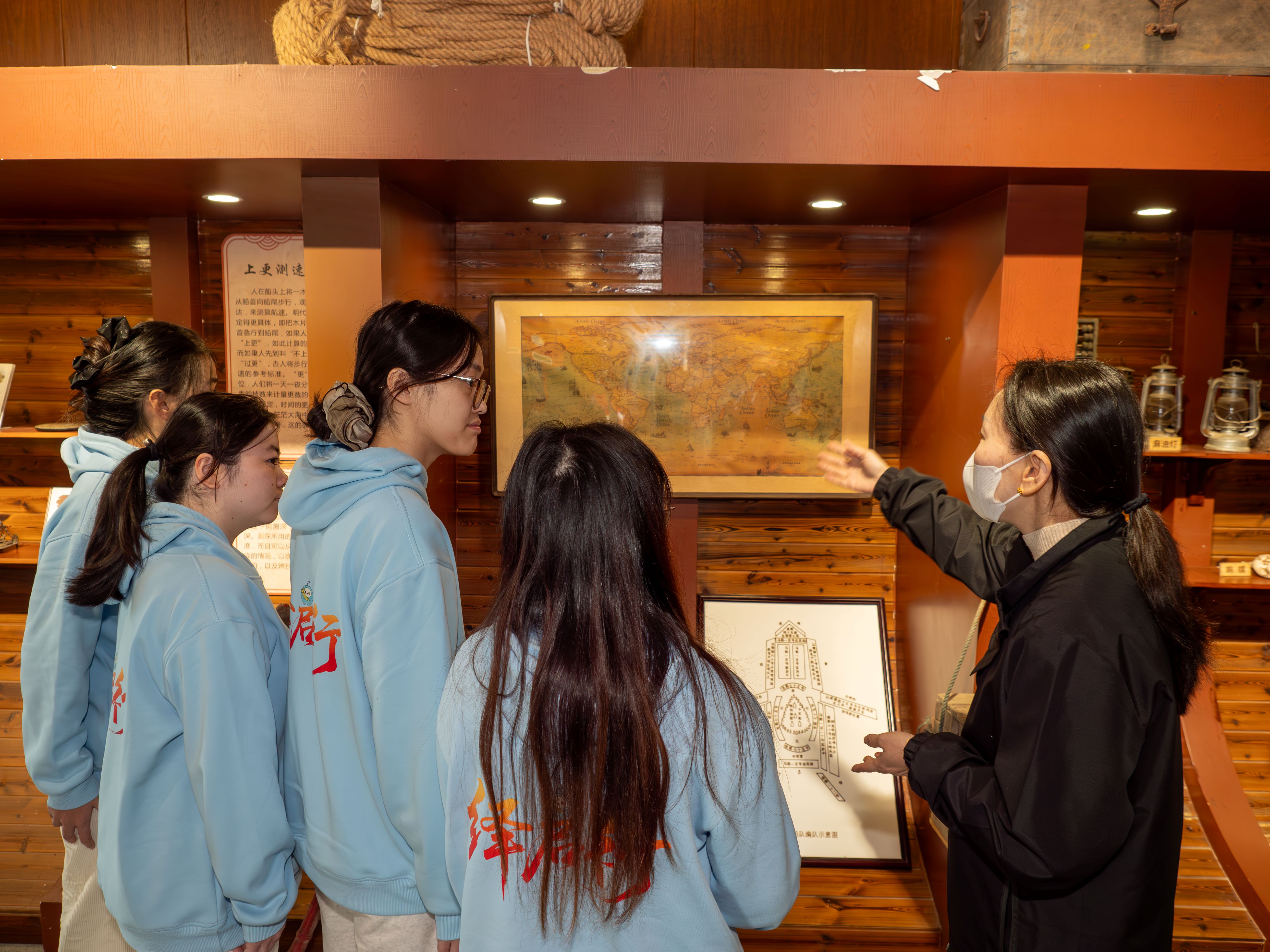 图为讲解员向服务队队员介绍福船文化。郑超鑫 供图