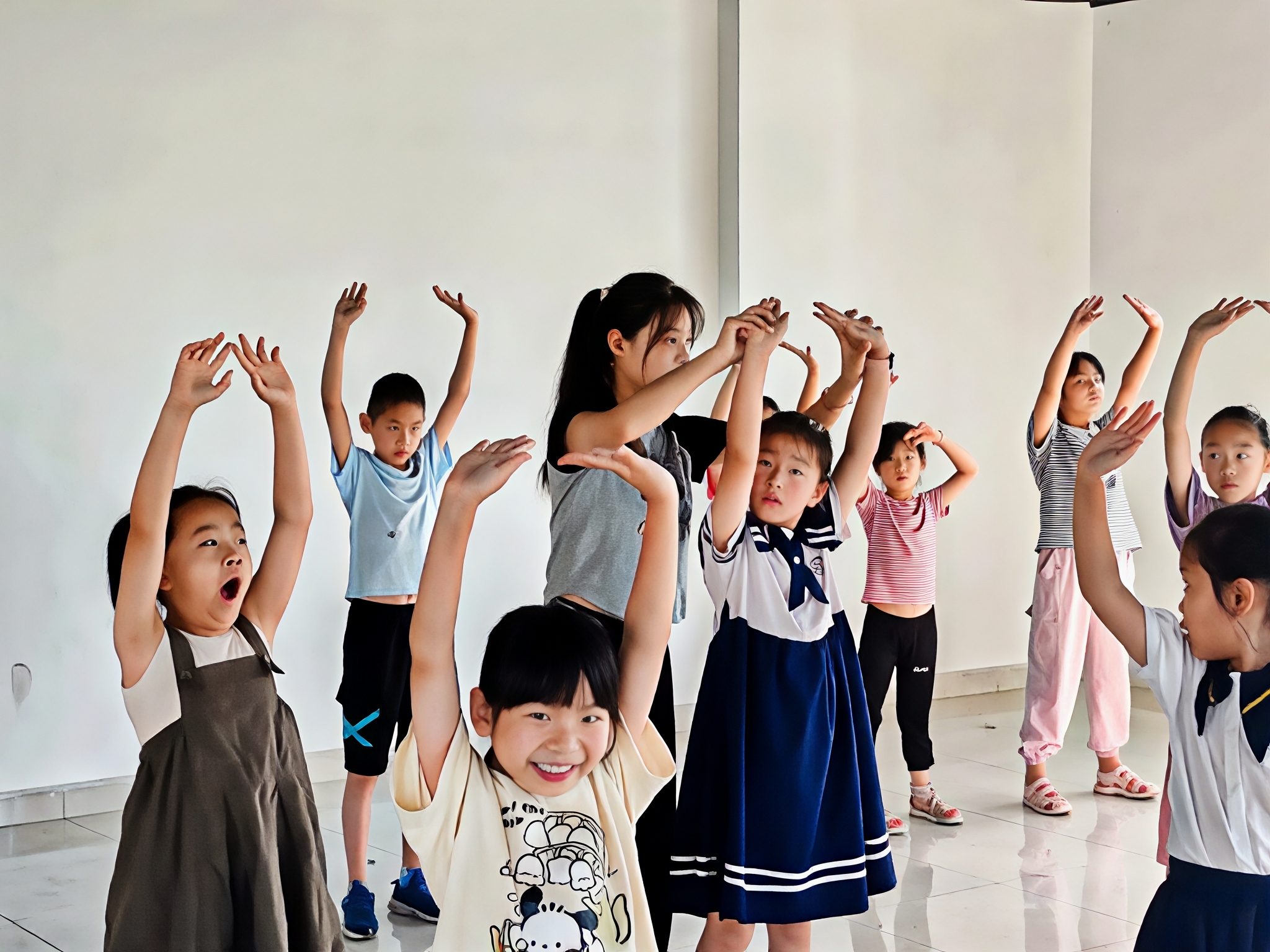 图为志愿者在教小孩子们打太极拳。李豫滢  供图