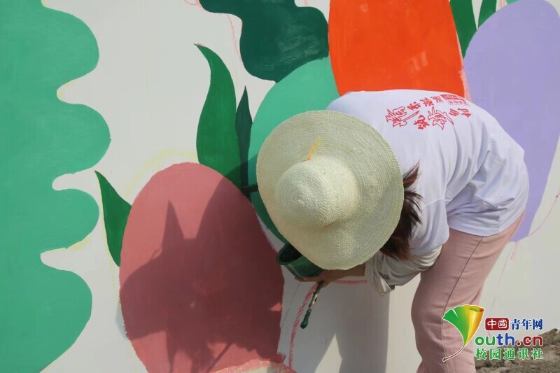 图为团队成员罗紫维不畏烈日,积极工作。中国青年网通讯员 陈依佳 供图