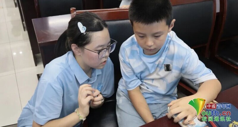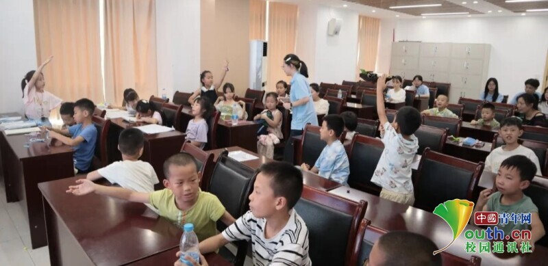 图为万北一社区实践团成员与社区青少年进行问题交流。陈旭 供图
