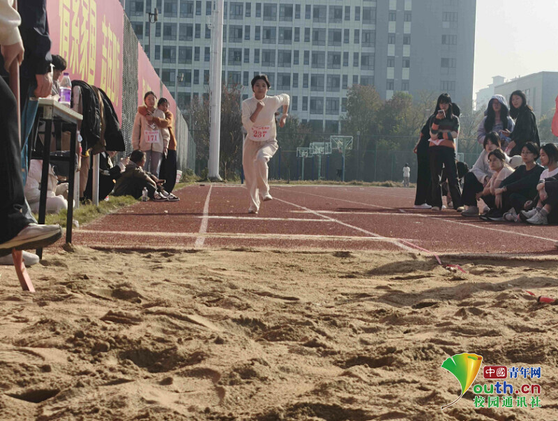 图为女子跳远比赛现场。丁一 供图