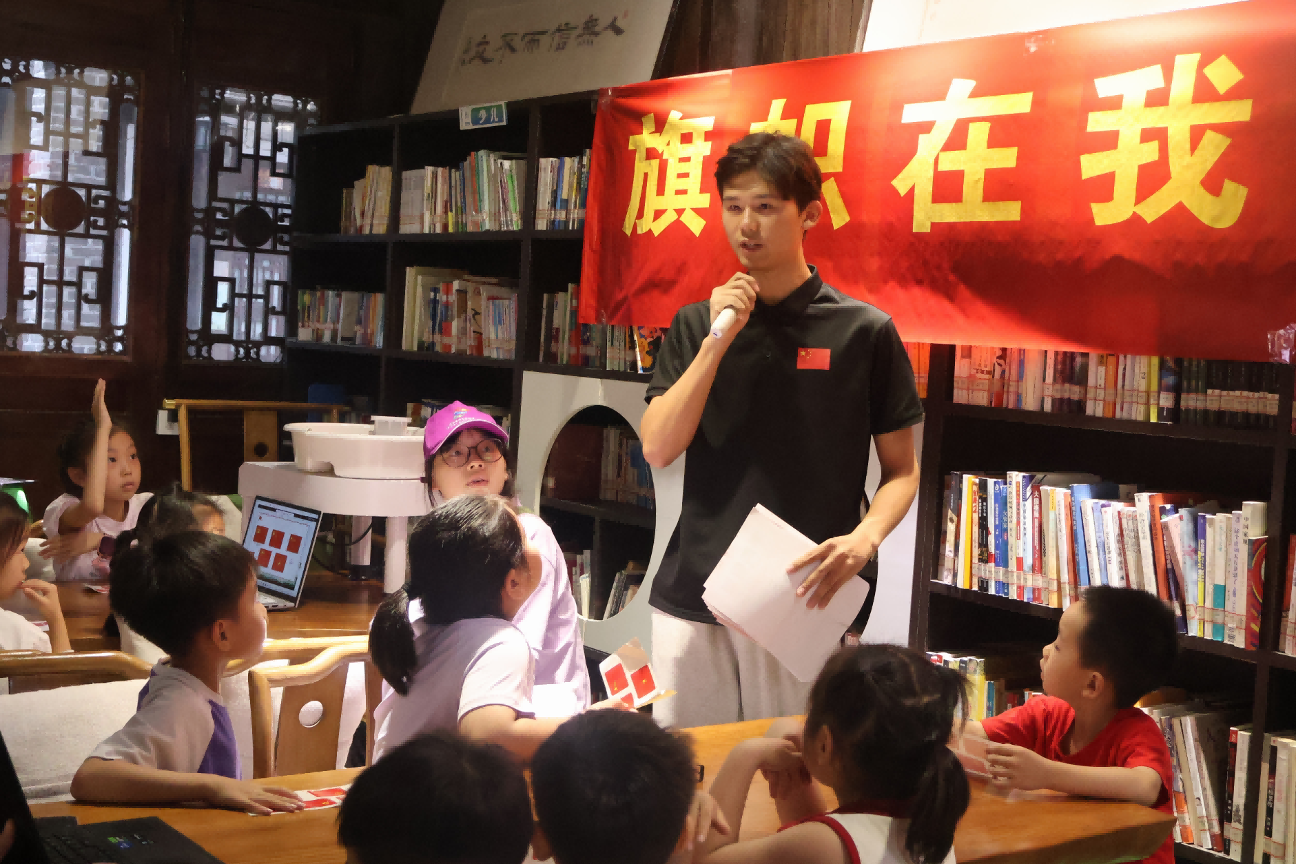 图为志愿者为小朋友们讲解各旗帜独特含义。陈明 供图